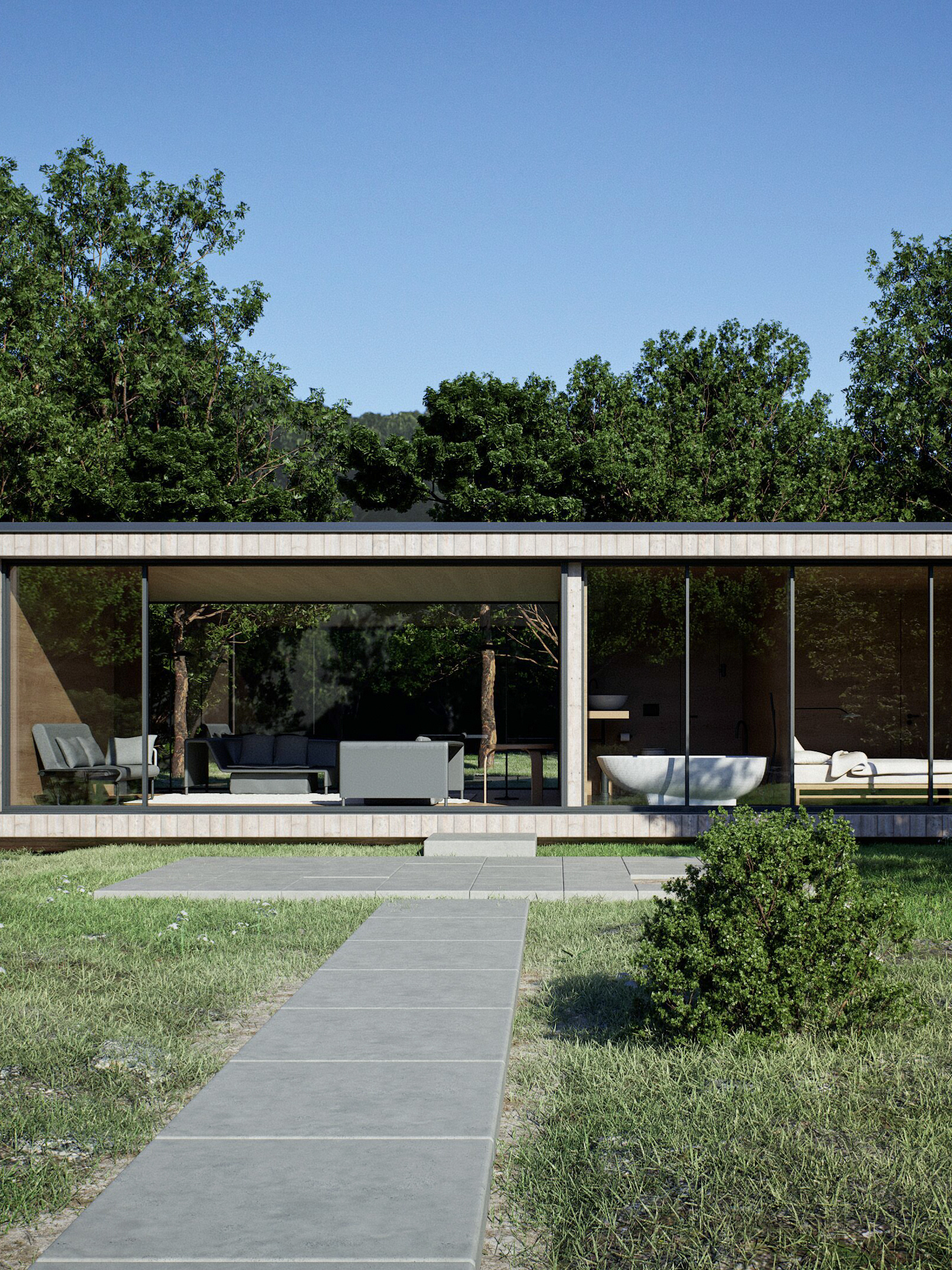 ArchiNature Visualization Studioは、建築が自然と調和する情景を描き出し、空間の魅力を最大限に伝えるビジュアライゼーションを目指しています。 自然光が生み出す陰影の美しさをフォトリアルに表現することにこだわり、目に見えるデザインだけでなく、空間に宿る「目に見えない空気感」まで描くことで、見る人の心を動かすビジュアルを制作しています。